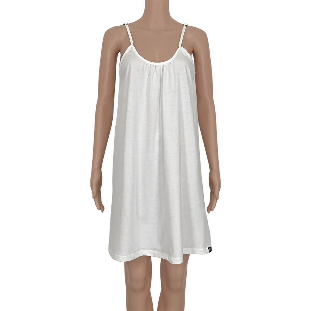 Crafted from 100% cotton, its thin straps and slightly flared cut gently enhance the silhouette with natural elegance and a sense of effortless freedom.